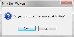 If the Yes button is pushed, the Lien Waivers will be printed. If the No button is selected, the program will return to the main screen.