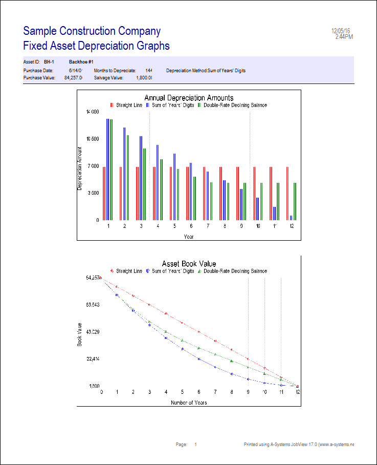 Press the Graph button to print the Depreciation Graphs for this Fixed Asset.