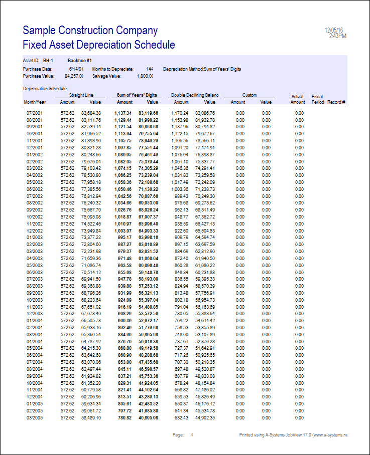 Press the Schedule button to print the Depreciation Schedule for this Fixed Asset.