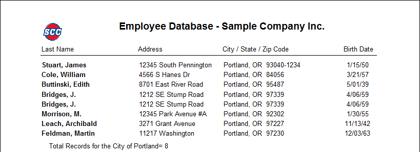 Notice that the last name is BOLD, the huge amounts of blank space after each line are much smaller now, and the information on each line is aligned horizontally. The amount of blank space that is printed below a line was also reduced.
