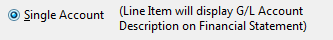 This line item will display the balance of a single G/L account. This single account can also be used for a total line item but it may be used only once.