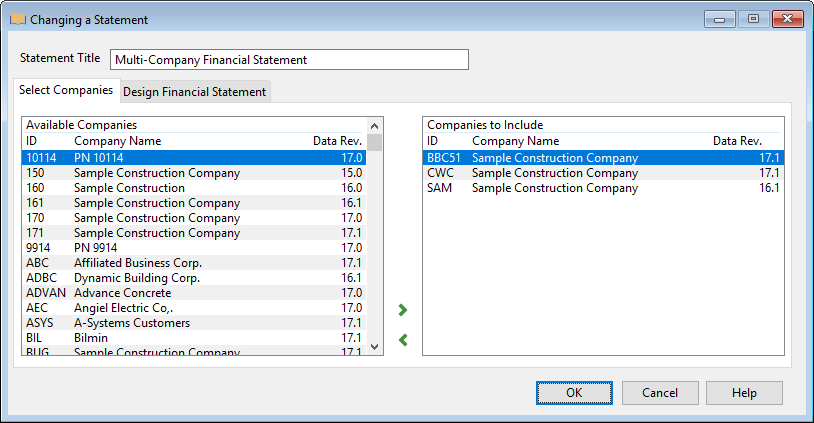 Adding or Changing a Multi-Company Statement