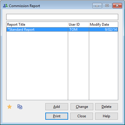 Press the Add or Change button to add or modify a Commission Report. For more information, see Adding or Changing a Commission Report.