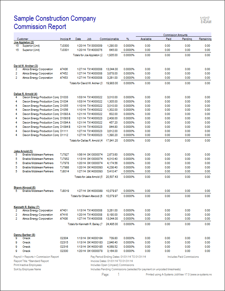 The Commission Report may be ordered either alphabetically by last name, or in numerical order according to employee numbers.