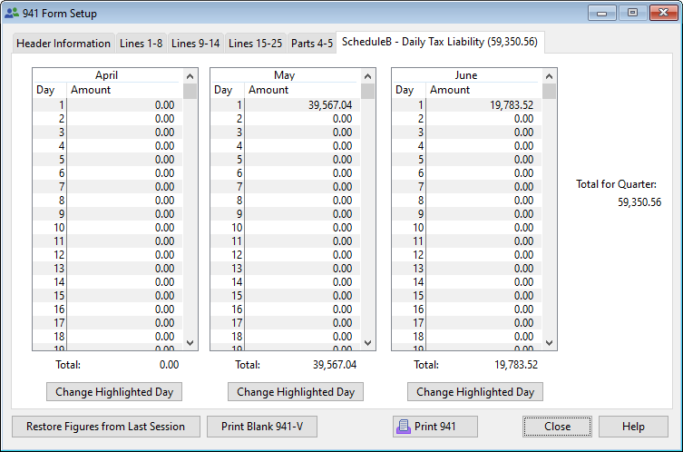 Click on the Schedule B - Daily Tax Liability tab and the following screen comes into view.