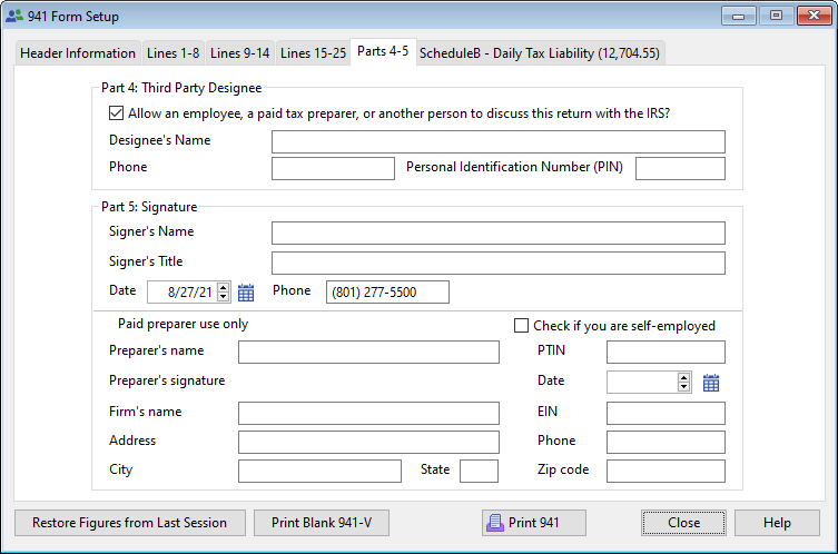 The accounting system will automatically enter the information and complete the form based on information taken from the Payroll module. Information may be added or changed as desired.
