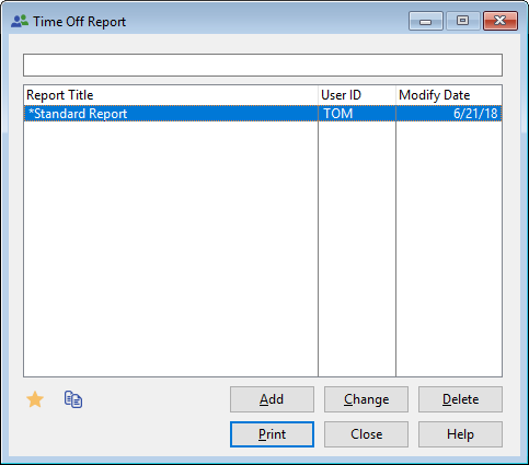Press the Add or Change button to add or modify a Time Off Report. For more information, see Adding or Changing a Time Off Report.