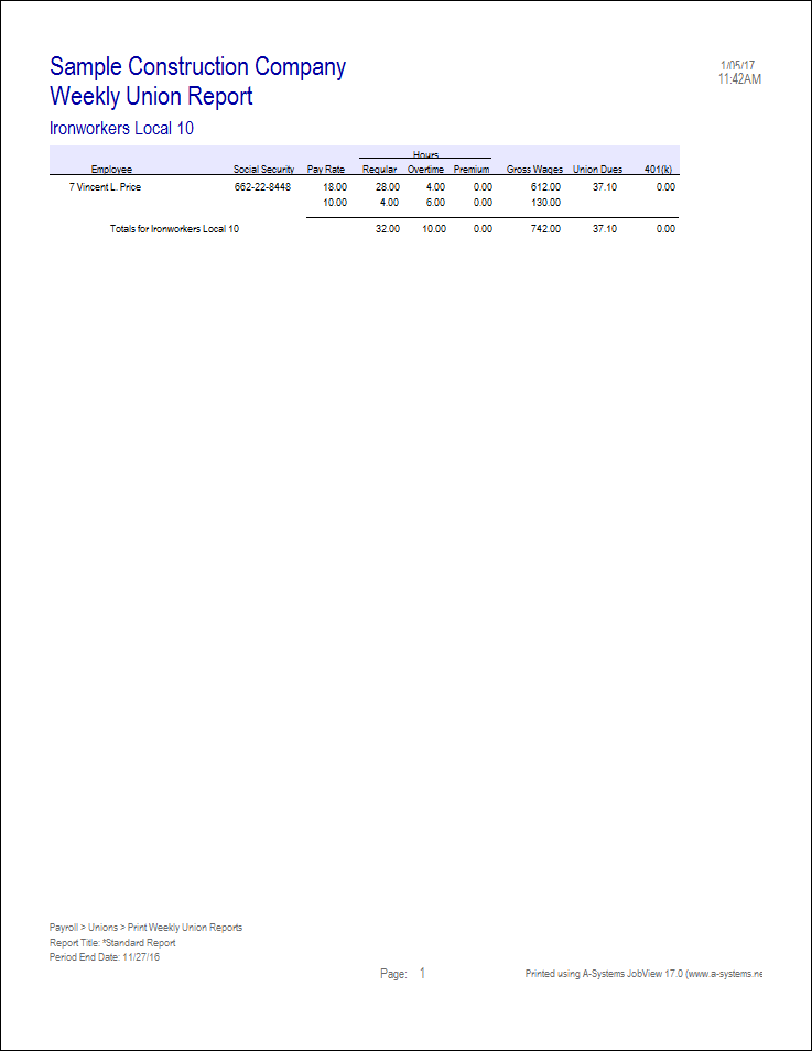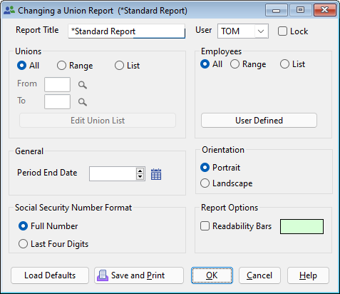 Select whether the report should print the full social security number or just the last four digits of the number.